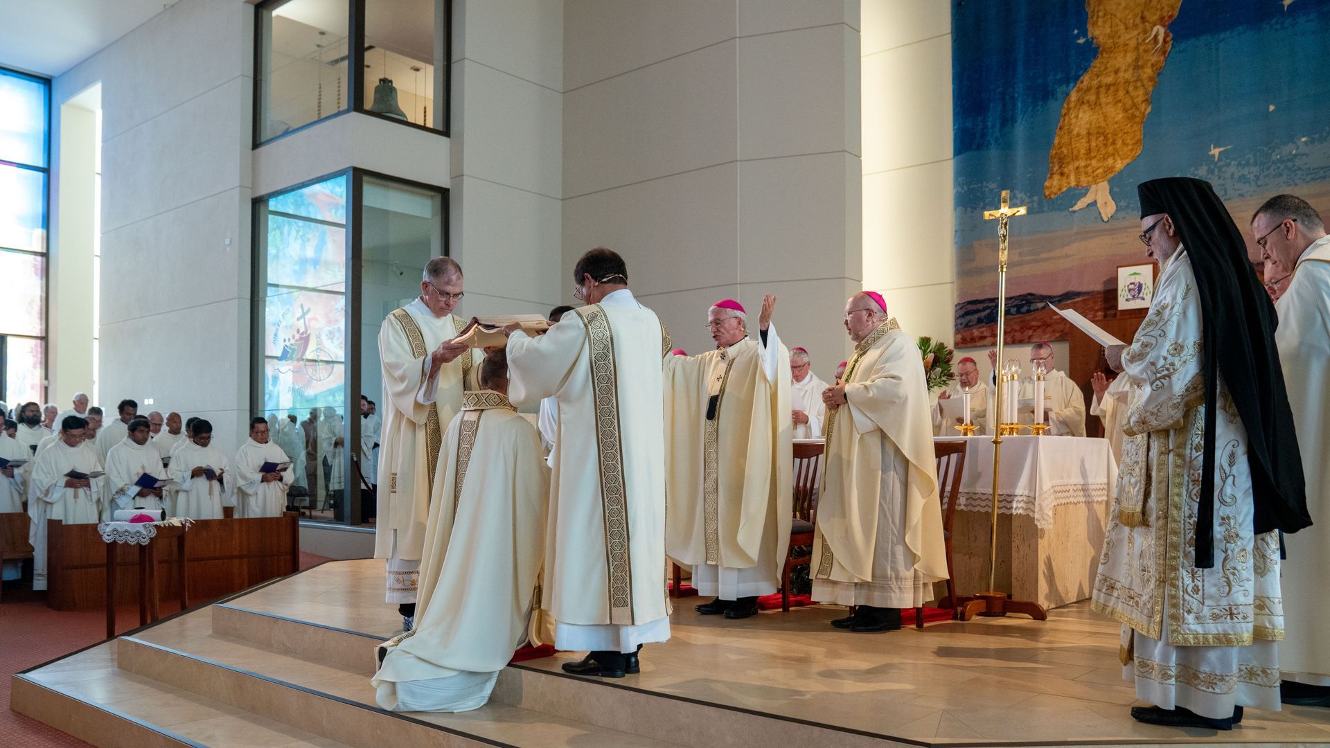 Apostolic Nuncio Charles Balvo presented the Papal Bull during the ceremony, which brought together the entire Bunbury Catholic community—clergy, seminarians, acolytes, altar servers, musicians, choir members, Salvatorian priests from across Australia, and representatives from Catholic Education Western Australia Ltd and Catholic Religious Australia.
