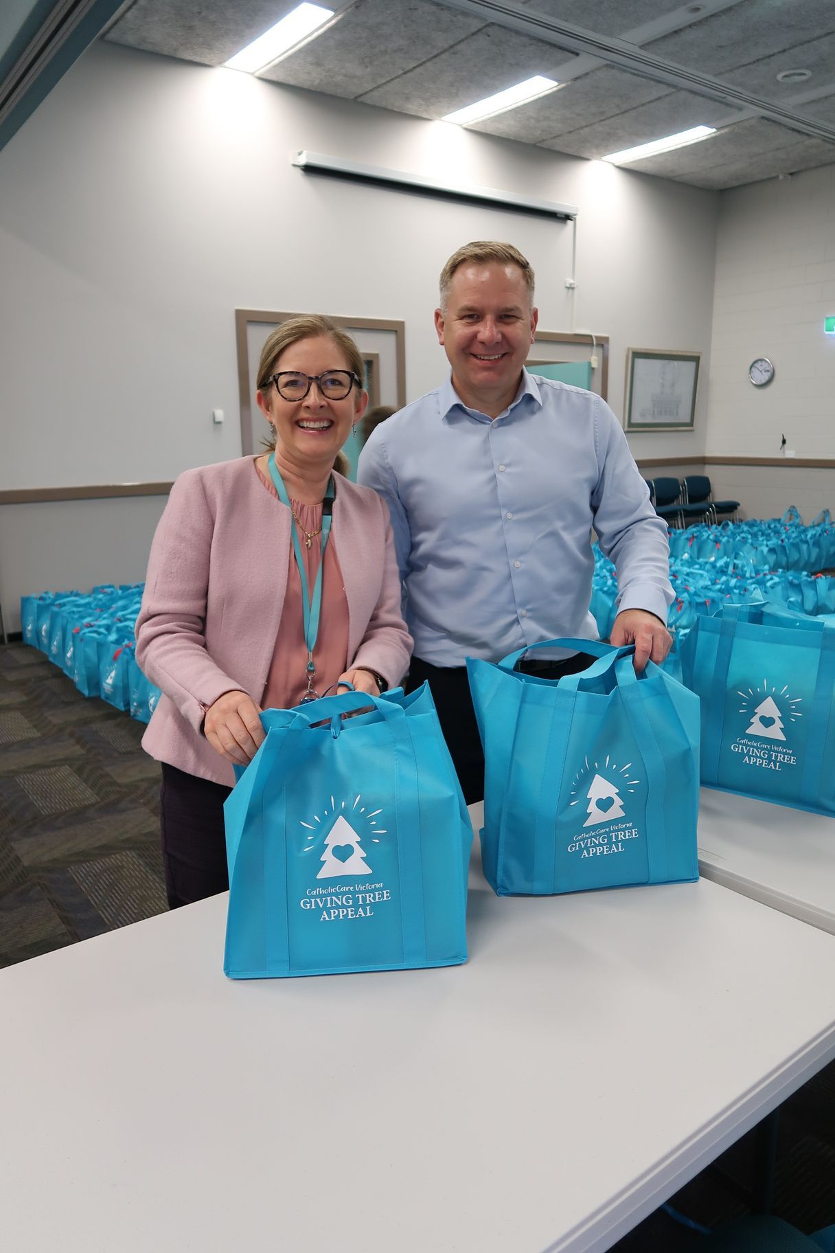 CDF Staff helping pack essential items for the 2022 CatholicCare Victoria Giving Appeal.