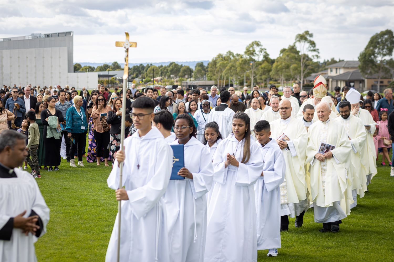 It all began back on Sunday 8 July 2012, where a Foundation Mass was held in the Diocese of Sale for a new Parish in Clyde North. Named St Thomas the Apostle, after the local Primary School, and with just 30 founding members, fast forward 11 years to Sunday 23 April 2023, the doors of a brand-new St Thomas the Apostle Church were finally opened to a bustling community of over 1,000 people.